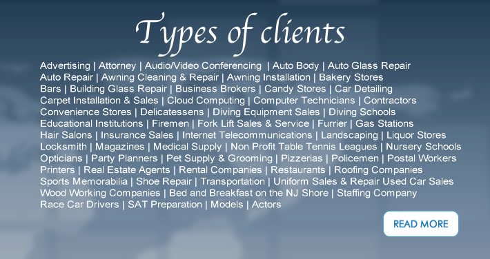 We provide computerized tax services for individuals, small businesses, and corporations. The brief listing shown below reflect the type of clients and industries served: